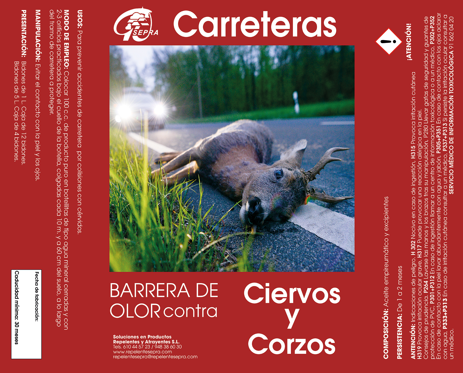 Producto eficaz para la protección y prevención de accidentes por corzos, ciervos y otros animales.